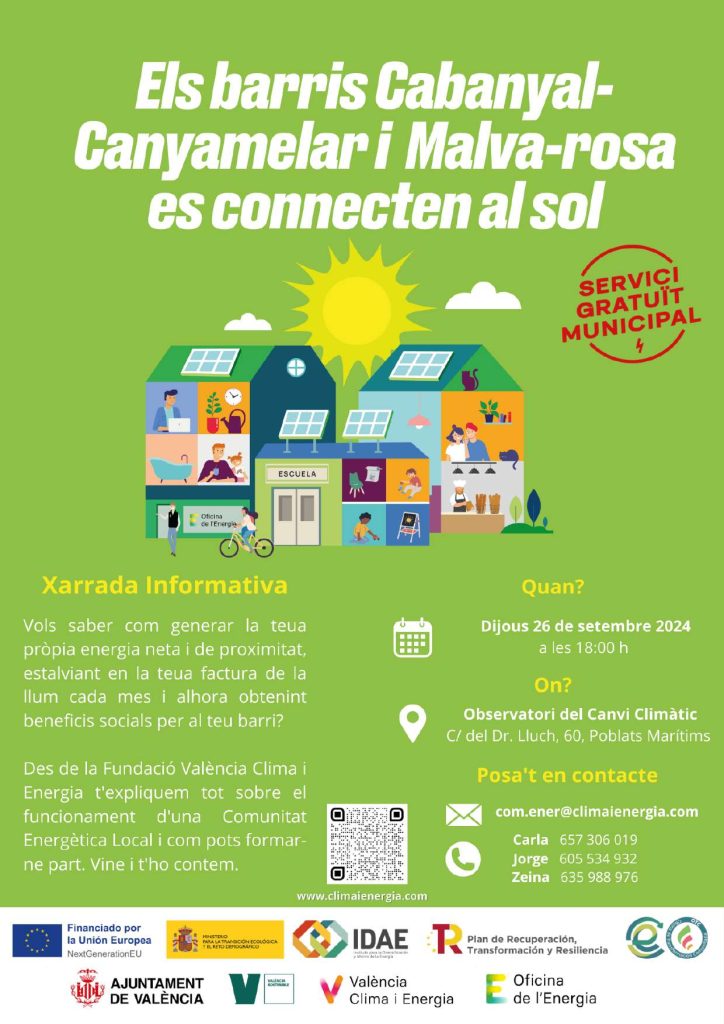 22/09/2024 Actualment hi ha constituïdes set comunitats energètiques, en diferents fases de desenvolupament, a Algirós, Malilla, Russafa, Ciutat Vella,